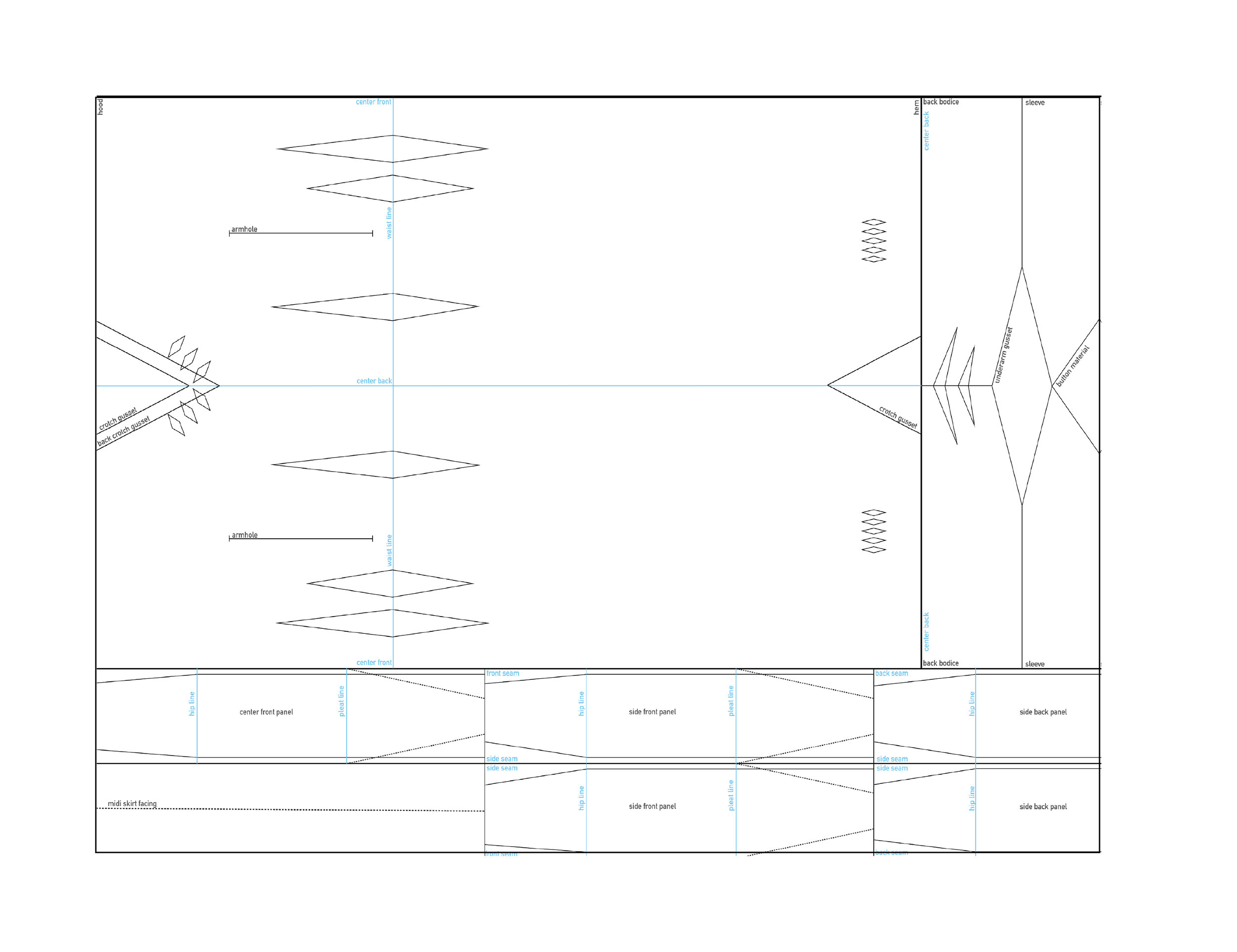The process of developing patterns for zero waste has been a unique and spontaneous experience. Unlike traditional western pattern making, the designer must keep in mind the width of the fabric, and account for issues like shrinkage and grains.